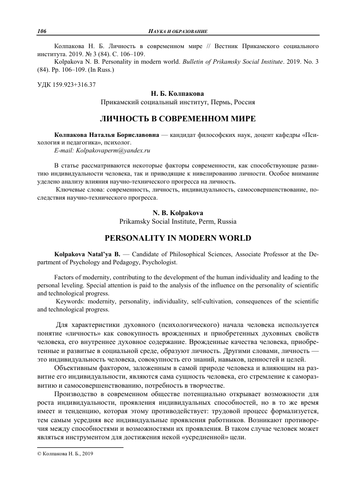 Индивидуальность и личная самореализация
